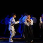 Szczególna siła spektaklu objawia się w momencie, gdy na scenie pojawiają się współczesne dzieci i młodzież. To oni wypowiadają słowa dawnych świadectw, oddając głos rówieśnikom sprzed 110 lat. Jedyny pomost między przeszłością a dzisiejszym światem tworzy właśnie ich obecność – fakt, że współczesne dzieci opowiadają o doświadczeniach dzieci z tamtego czasu. Widz obserwuje więc realne, dzisiejsze dzieci, które stają się nośnikami pamięci swoich ówczesnych rówieśników. Młodzi wykonawcy nie tylko mówią, lecz także śpiewają dawne pieśni, które mogły towarzyszyć uchodźcom podczas bieżeństwa. Przygotowanie pieśni i praca wokalna odbyły się pod kierunkiem Bartosza Wasiluka, nadając muzycznym elementom spektaklu szczególną autentyczność.