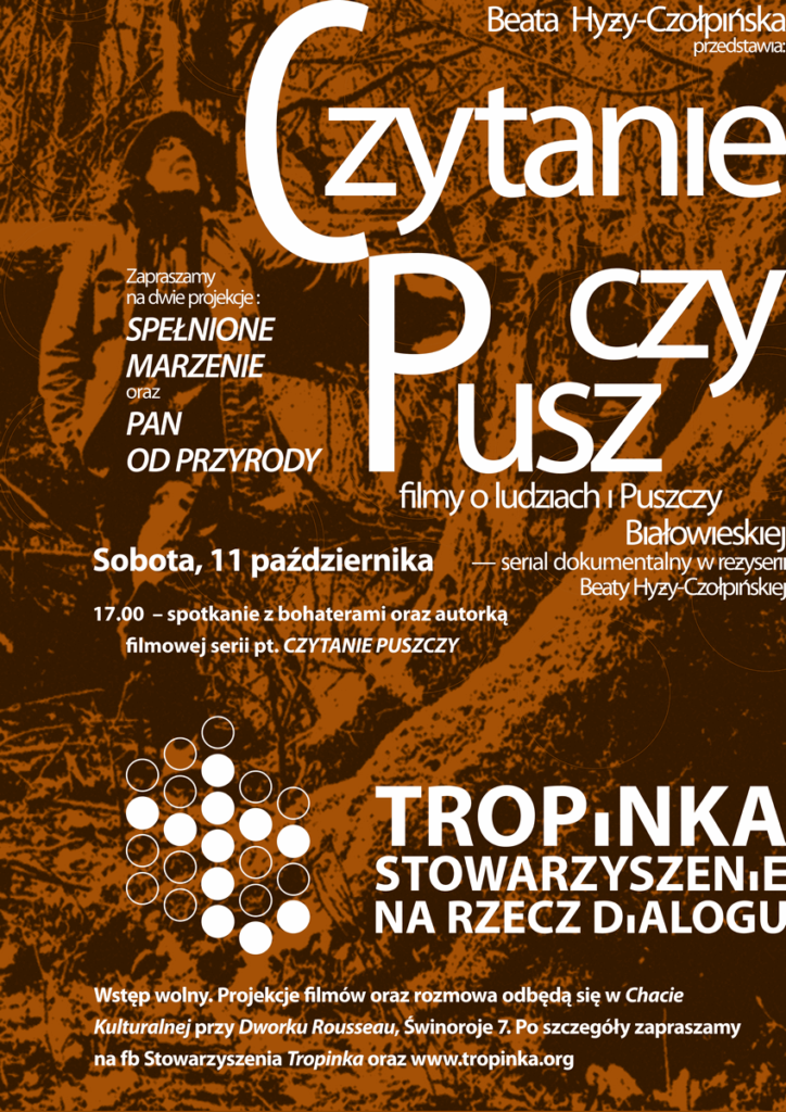 tropinka-2025-czytanie-puszczy-cykl-filmow-dok-spotkanie-2-plakat Full size 849 × 1200 pixels Czytanie Puszczy – filmy o ludziach i Puszczy Białowieskiej Previous image Next image