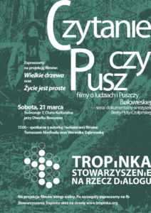 W marcową sobotę odbyło się pierwsze tegoroczne spotkanie z cyklu Czytanie Puszczy – filmy o ludziach i Puszczy Białowieskiej.